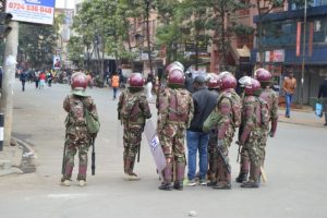 Anti-riot police officers stand guard as they try to disperse protestors from accessing the NAIROBI CBD during a past protest.